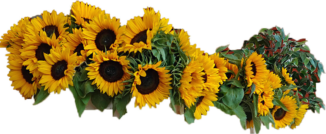 Ein Groß-Tutorium Sonnenblumen, noch als Gruppe.