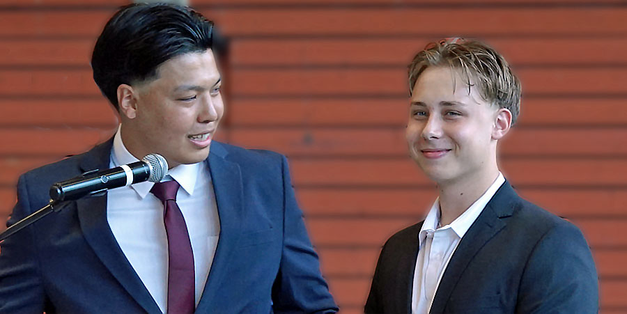 Marius würdigt zunächst Hussains beeindruckenden Lebensweg: Als Geflüchteter kam er ohne Deutschkenntnisse übers Mittelmeer nach Deutschland – und schaffte schließlich das deutsche Abitur. Ein besonderer Dank gelte dabei seinem stets treuen Helfer: ChatGPT.