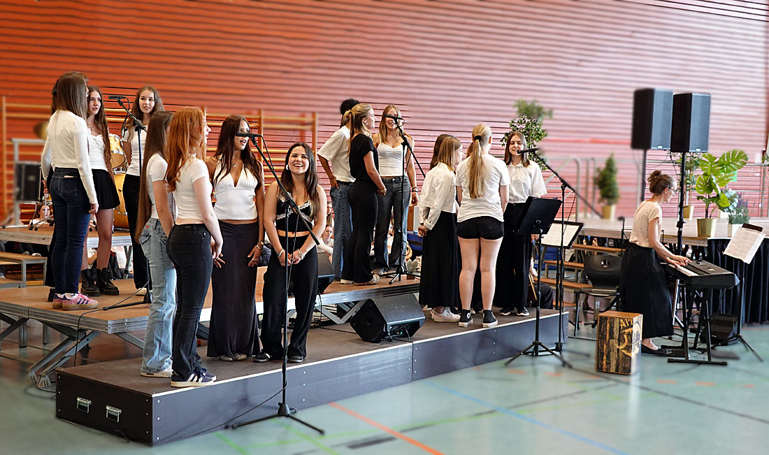 Der Grundkurs-Chor unter der Leitung von Frau Zimmer singt den Song Unwritten.