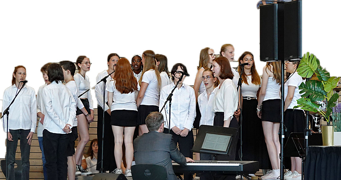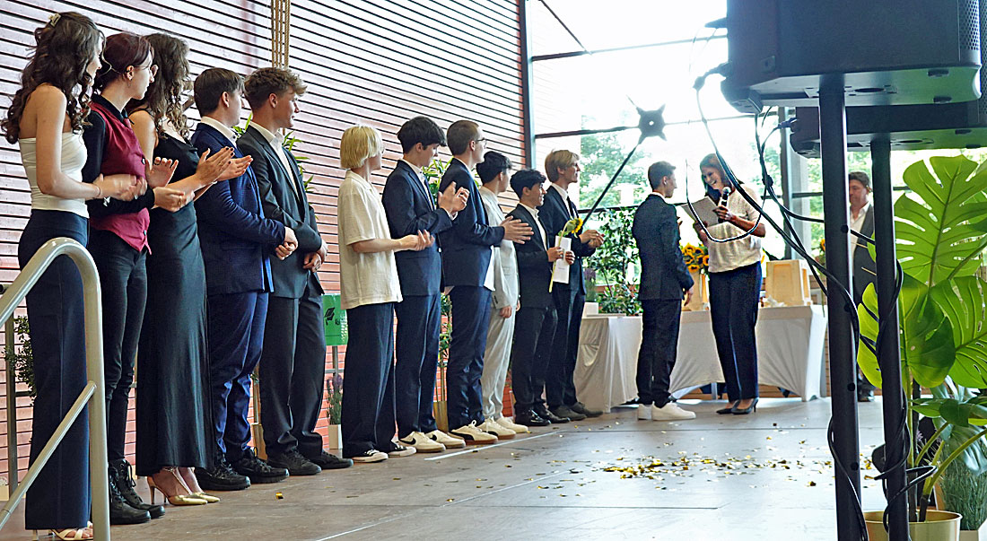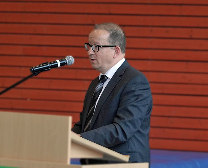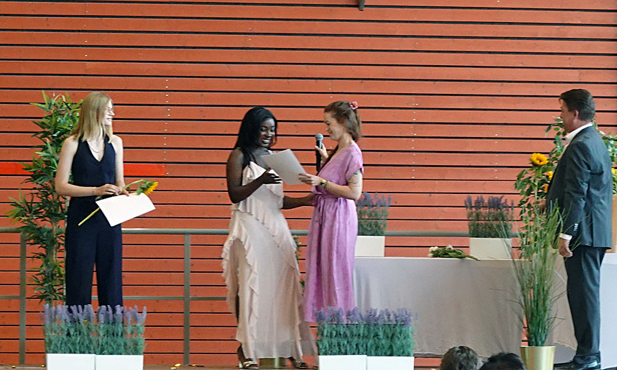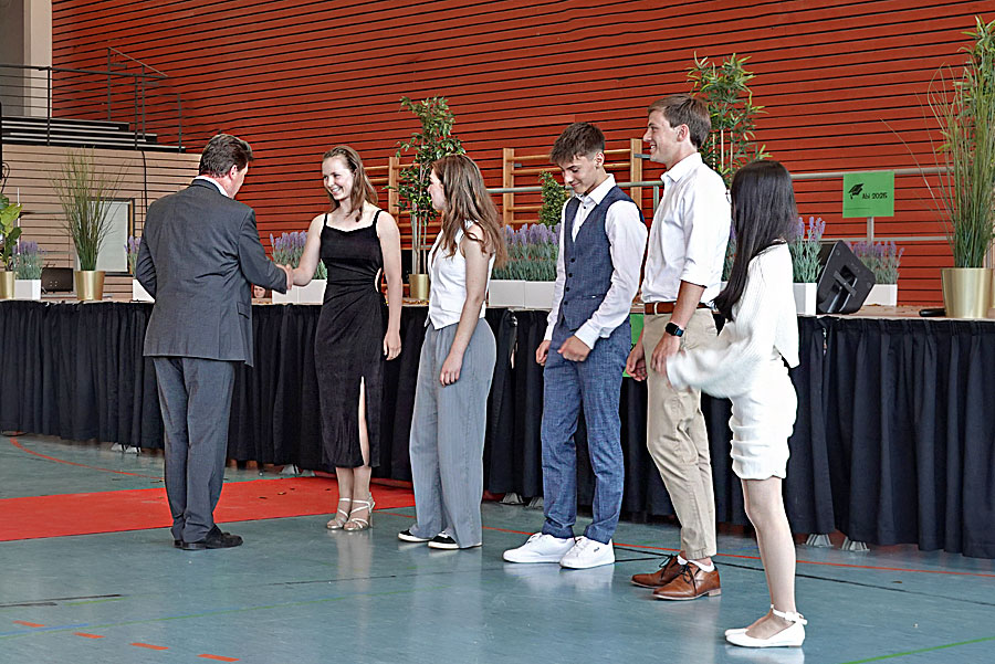 Mit einem Blick in die Zukunft wendet sich der erfahrene Schulleiter noch einmal an seine Abiturient:innen: „Eure Generation steht vor unglaublichen Herausforderungen. Meistert sie mit Respekt; mit Respekt, indem ihr einander zuhört – mit Leidenschaft, Empathie und mit Achtung vor dem Anderen, vor den Schwächeren und auch vor den Andersdenkenden! Auf diesem Wege wünsche ich euch Erfolg und Glück!“
