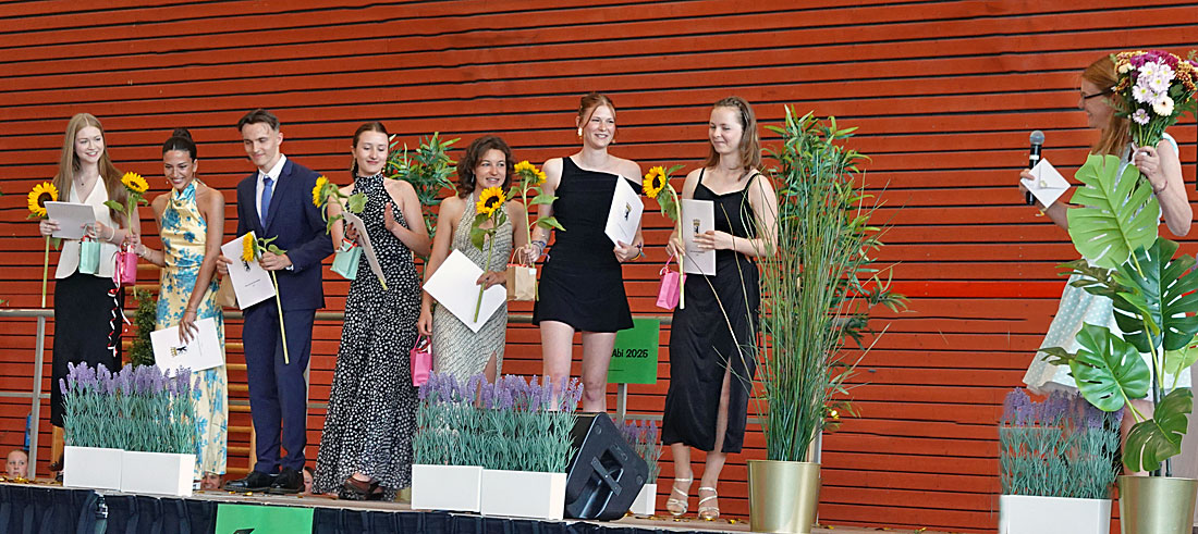 Zum Abitur 2025 wurden 114 Kandidat:innen zugelassen, 110 von ihnen haben das Maturum erreicht. Die Durchschnitts-Abi-Note beträgt 2,28. 32 Abiturient:innen erreichten ein Einser-Abitur, also eine 1 vor dem Komma ihrer Durchschnittsnote, fünf von ihnen die Luxusversion mit der Traumnote 1,0.