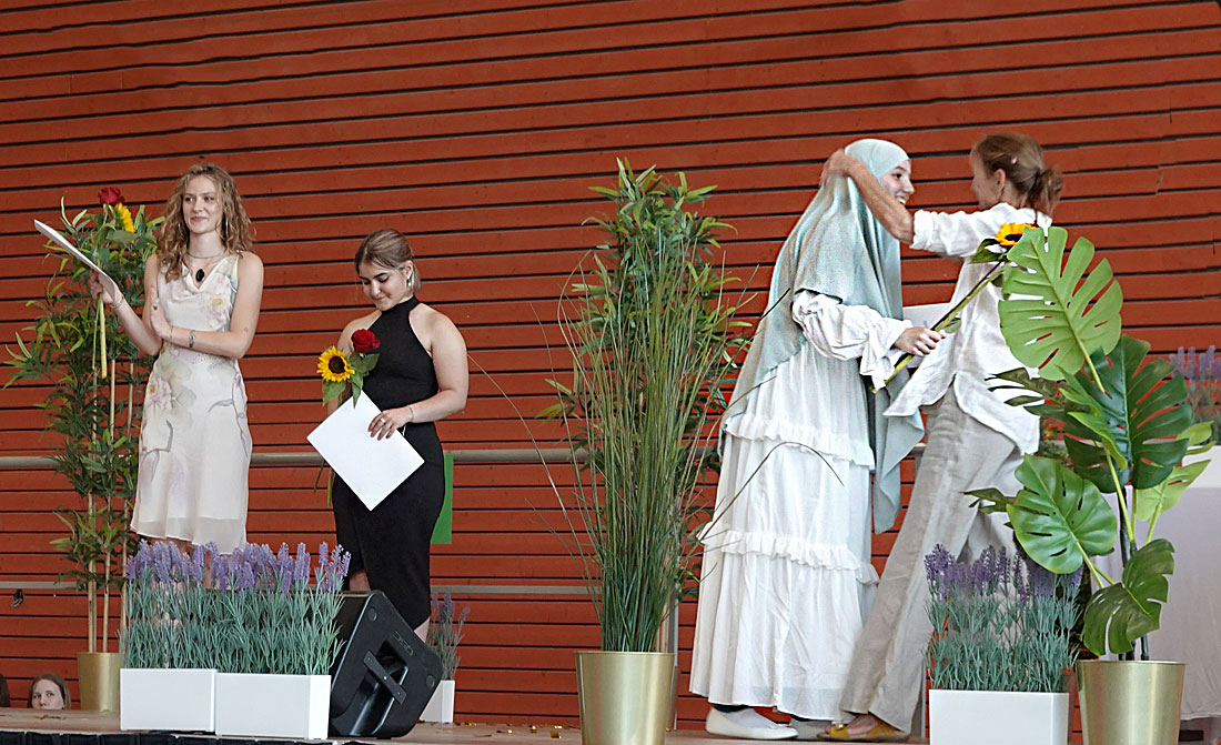 Kreativ ist ihre ehrliche und teils spöttische Danksagung an die Lehrer:innen: Einige seien Wegweiser gewesen, andere eher „Verkehrshütchen im Nebel“. Trotz gelegentlicher fragwürdiger Pädagogik, Druck oder unpünktlicher Vorbilder danken sie den Lehrkräften für ihre Geduld, ihr Durchhaltevermögen und die Begleitung auch in schwierigen Momenten. „Ihr wart nicht nur Lehrer, sondern manchmal auch Vertrauenspersonen und gelegentlich Psycholog:innen mit Klassenbuch.“