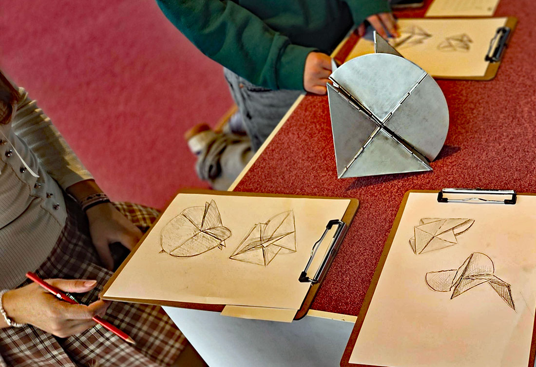Kompetent angeleitet durch eine Kunsthistorikerin des Hauses, haben sich die Schülerinnen und Schüler auf die verschiedenen Ausdrucksformen der Künstlerin einlassen und eigene Ideen entwickeln können – angeregt durch die Formensprache Lygia Clarks.