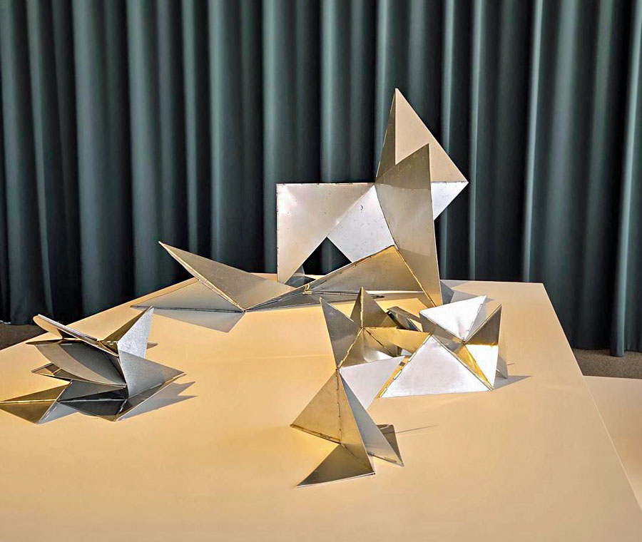 Die Ausstellung ermöglicht es, diese neu zu „falten“ und somit immer wieder zu verändern. Durch die zeichnerische Weiterentwicklung konnte jeder sich die entstandenen Formen individuell aneignen.