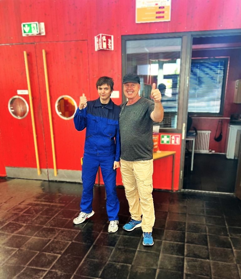 Praktikant Manuel und Schulhausmeister Deinert