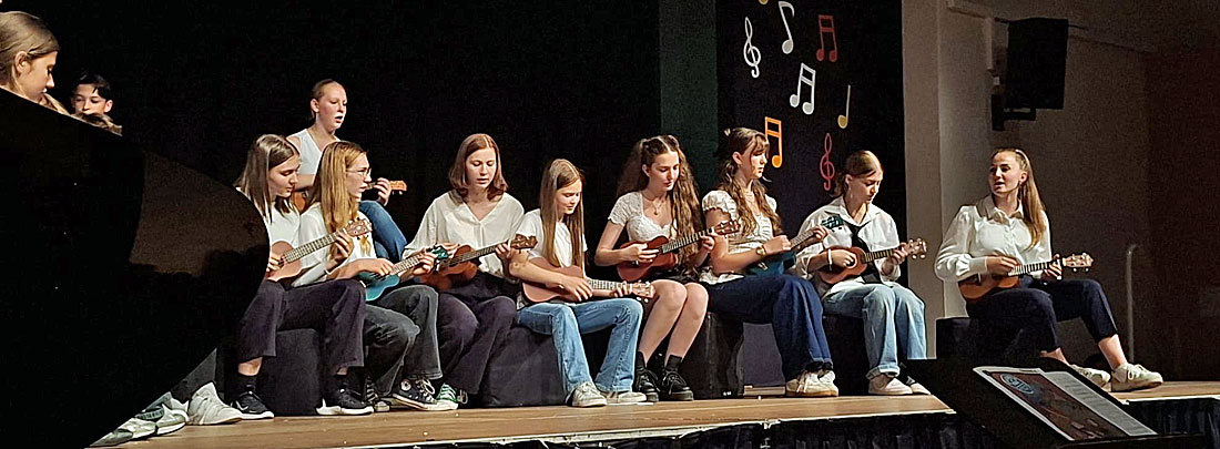 So lautete dann auch das Motto des Konzerts eine Woche später. Gemeinsames Singen im Chor, Tanzen, Musizieren im Orchester und in einer Ukulelen-Gruppe sowie Songs schreiben und improvisieren zu Filmmusik-Ausschnitten – all dies macht das Musikkolleg*innen-Team möglich und die Fahrt somit zu einem unvergleichlichen Erlebnis.
