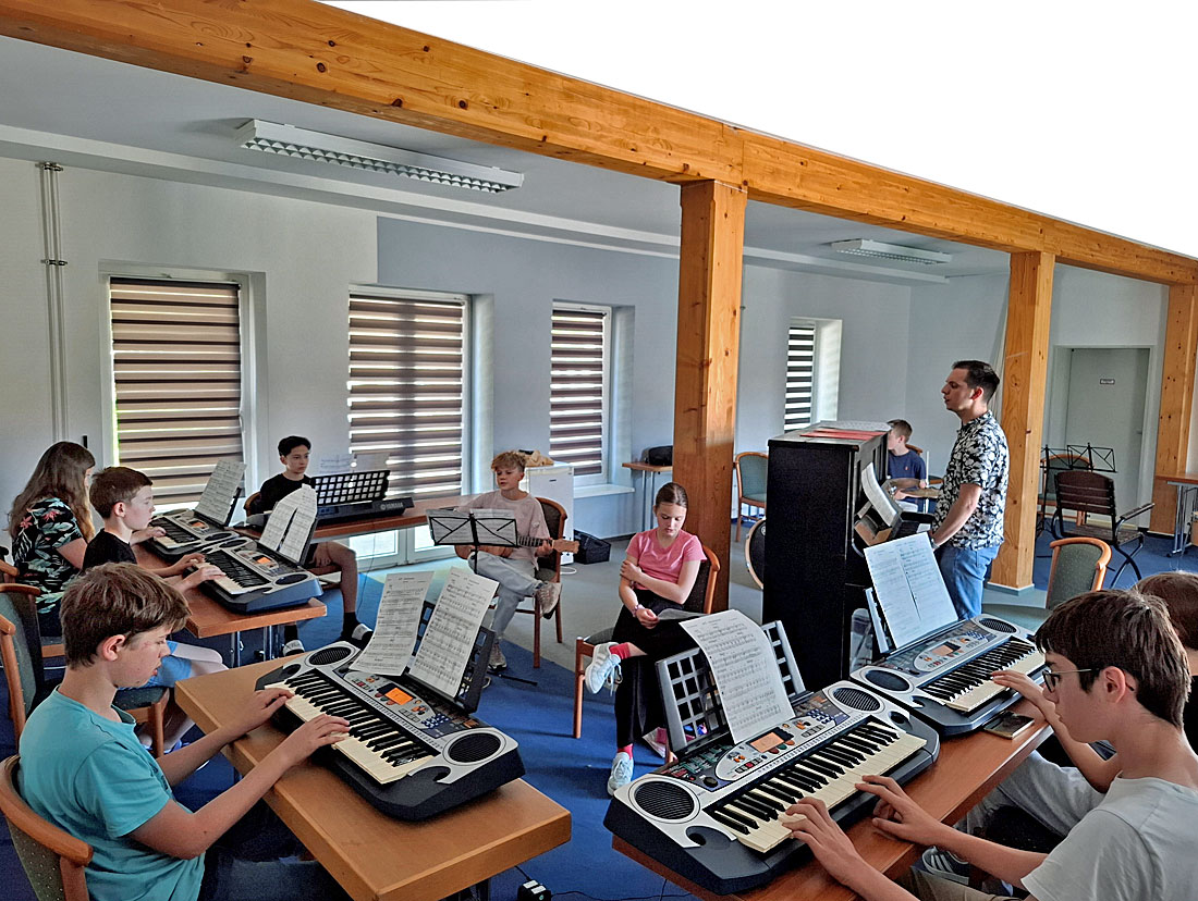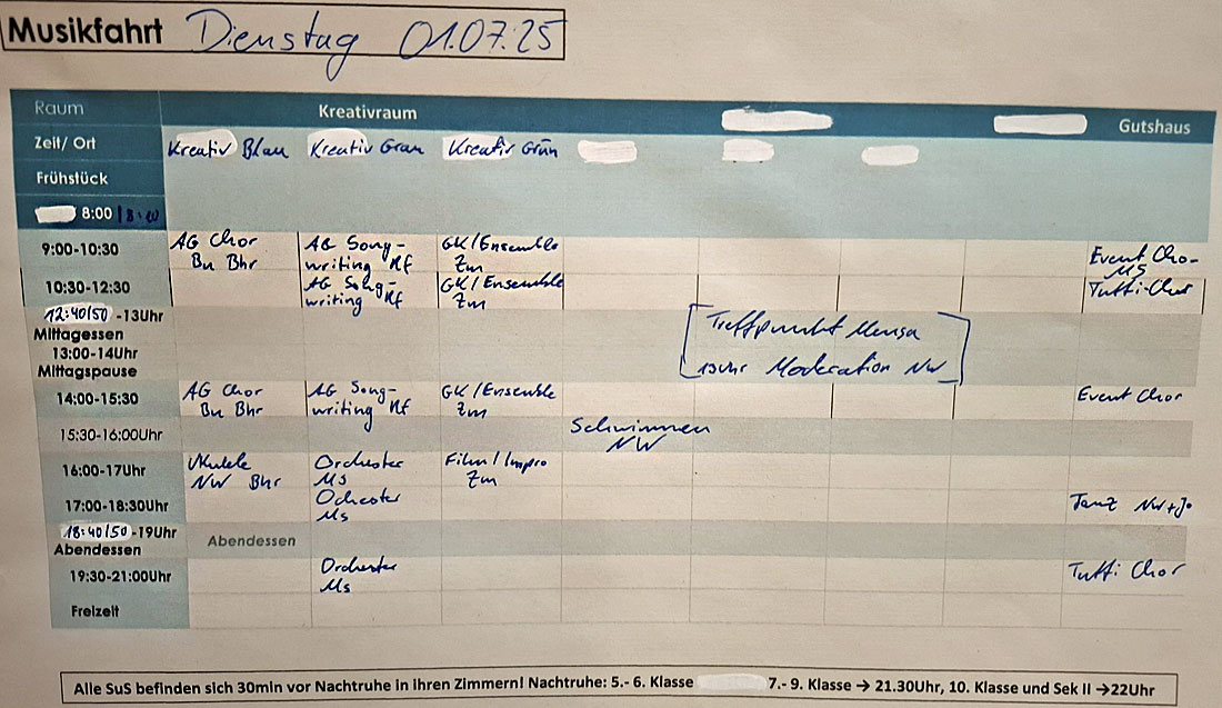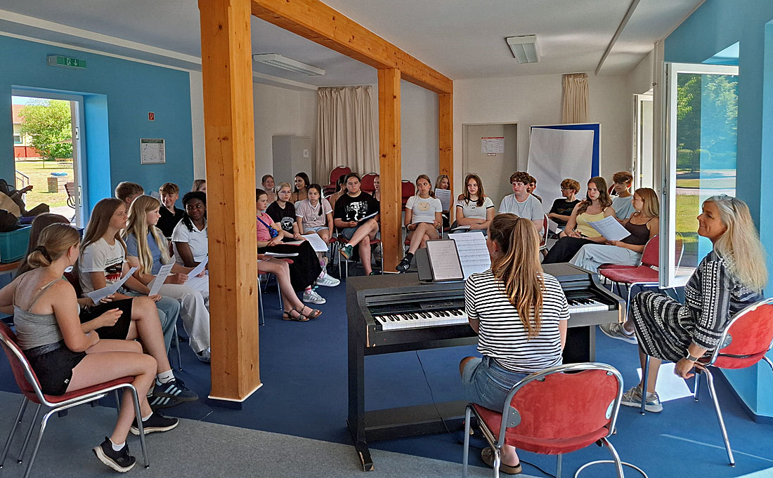 Auf unserer jährlichen Musikfahrt in das idyllische Gnewikow am Ruppiner See mit 83 musikbegeisterten Schülern und Schülerinnen und 6 Lehrkräften wurden Temperaturen von 36 Grad erreicht.