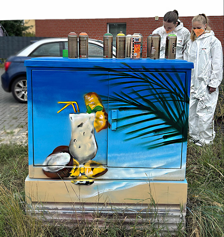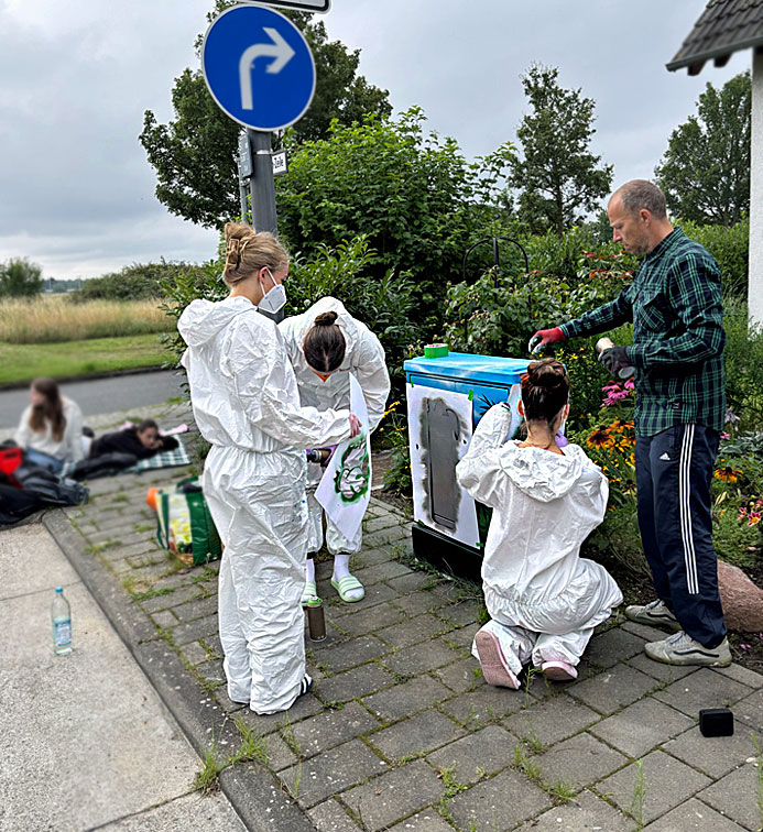 Streetartkünstler und der WP-Kurs Kunst 9 gestalten 15 Stromkästen