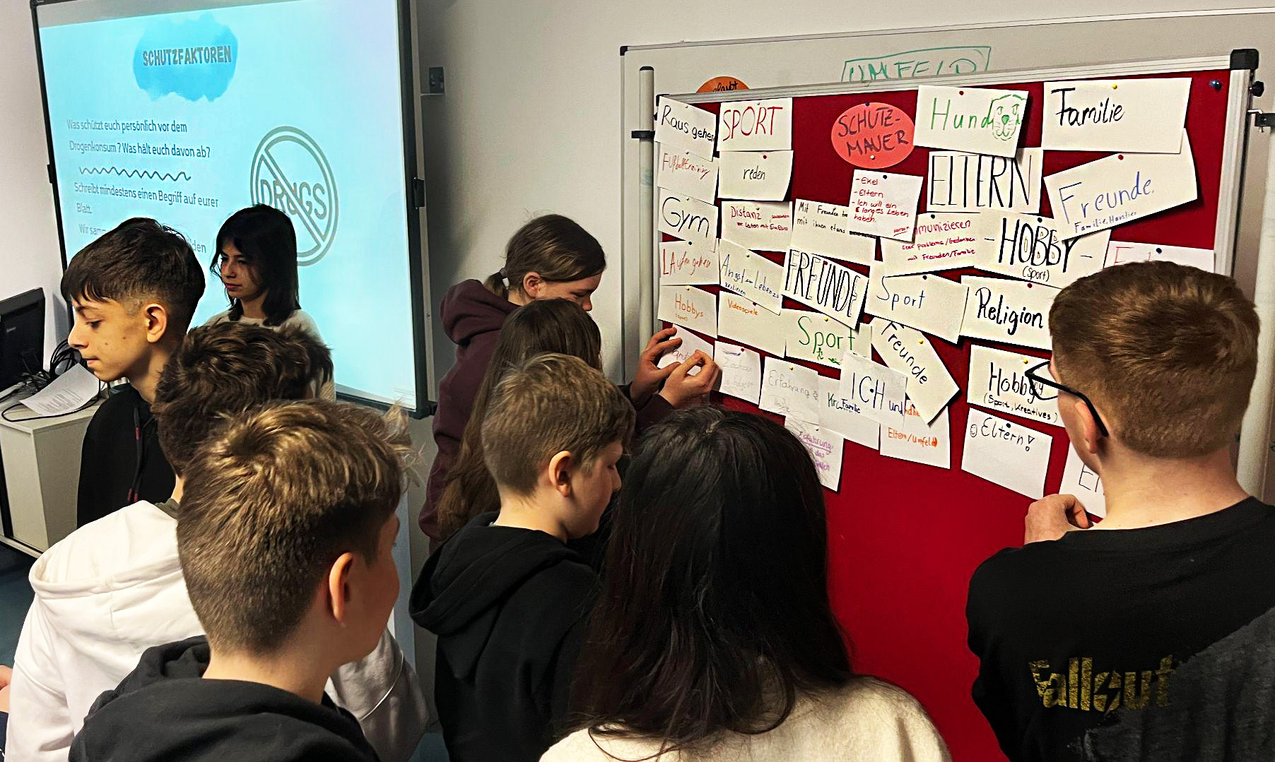 Auswertung der Stationen mit der gesamten Klasse 7 und Erarbeitung einer “Firewall” durch individuelle Schutzfaktoren